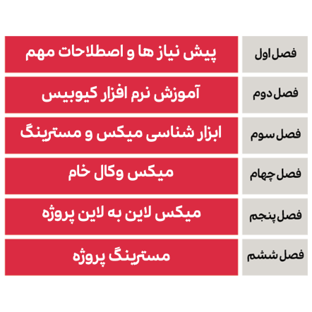 میکس فرآیند تنظیم و ترکیب ترکهای مختلف صداست — با کنترل ولوم، EQ، کمپرس و افکتها تا همه اجزا منسجم و متعادل شنیده شوند.